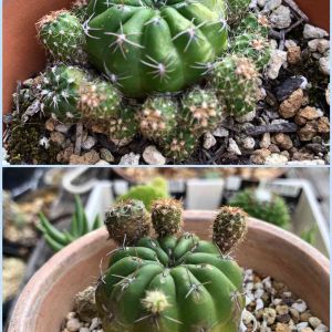 マツカナたち。 ①妙高多肉市場から、やって参りました。 1号より棘が多いです。 ②ポチッとした、コロンカクタスさんの白花。 まるまるしてます。 ③3つ並べてみました! ④名無しだから、安い〜d(゚ε゚d) 多分、ポリジーだと思ってます。 違うようなら、ご指摘ください。 仔吹がスゴいので、植え替えの時に、ほぼもいでくれた。