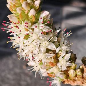 タコノアシは今頃どんな感じなのか見に行ってみました。花は咲いてるのかな? ②小花を初めて観察してみました。 花弁は無く、黄色い葯をつけた雄蕊が10本、白いのが雌蕊で、5本あるように見えるけど基部は合着してるそうです。下の方は既に若い実になってるので、花はギリギリセーフでしたね 秋の茹でダコ🐙が楽しみです💕 9/13横浜市