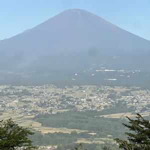 今朝の富士山と麓の景色、靄の金時山.乙女峠 (2025.9.6. 6;18〜小山町、御殿場市より)