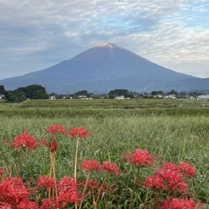 今朝の富士山と雲、靄、ススキ、秋桜、彼岸花 (2025.9.2. 6:18〜小山町、御殿場市より)