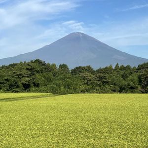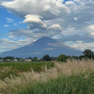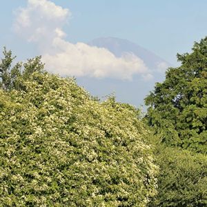 快晴の空と富士山と雲,稲穂の田、栗の木と実 (2,025.7.26 7;37〜小山町足柄、千保より)