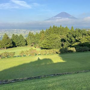 富士山と鷺の様な雲、ゴルフ場、誓いの丘 (2025.8.15 6;19〜小山町足柄峠中腹より)