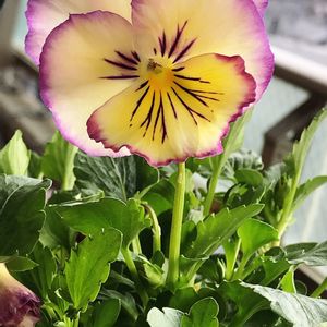 平和に 震災を忘れずに 地球🌏を大切に 【サントリー ウインティー】 うちの半日陰のベランダ鉢植えでも華やかに咲いてくれるお花 毎年 3鉢お揃い鉢に並べます それぞれ暮らしてる3人の子供達を思い出す 平成元年から8年生まれ みんな性格も特技も違うのにとっても仲良しなの おんなじスレンダーな素焼きの鉢に3つ並べるの好きなんだー 〜ら〜♫💓 イメージは ライムグリーンは末っ子長男 ローズは次女 ピーチは長女 ですけど‼️今年は御目当ての鉢が空きません 取り敢えずの鉢に植えてたら あっらーローズが急成長 パンパンじゃん どーやって植え替えんのー 暗い過去 【ボンザマーガレット🍒 ボキン(><)‼️劇場】 思い出してビビります 無理せず人が来るまで待とー でも多分 父ちゃんだけだな あーー💧 (自分で出来る範囲内でやれば?って思われてるのがわかってるから又ビビる(>人<;)💦 夜にならないうちに帰ってこないかなー それは無理⤵︎)