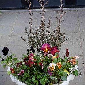 お疲れさまです♪ 初めて魚柳梅小さなお花咲くそうです 虹色スミレメープル ビオラの寄せ植え