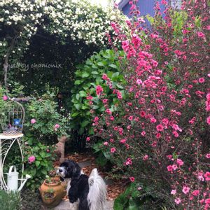GreenSnap開始7日目 過去写真より「いらっしゃいませ」 ウチはただただ 生い茂っているだけっていう(笑) ・ 早咲きのクレマチスが春を告げ バラ→紫陽花→次々リレーします 草花、野菜、果実、盆栽 色々身を寄せ合っております ・ ここでちょっと小休止 次の花が咲くのを待ちます♪
