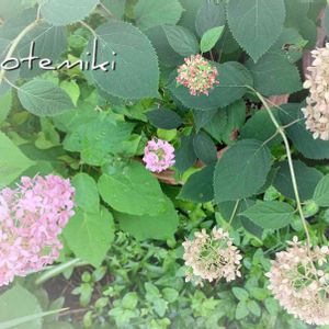 紫陽花が今年も元気に咲いてくれました✨✨ 右は、挿木でいただいた紫陽花!色が変わっていくのが楽しみです。 アナベルは、鉢が小さいので葉っぱも花も小さめ💦大きい鉢に植え替えてあげないと…
