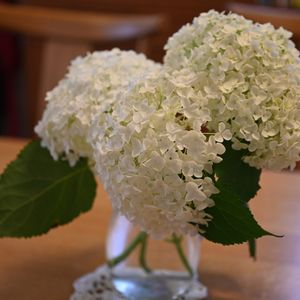 鉢で育てている紫陽花が小ぶりながら元気に咲いてくれたので、お友達にいただいたアナベルの横に飾りました。この季節の雨や曇りがちなお天気の中、お部屋を彩ってくれています♪^ - ^ 同じ株から咲いたのに、花によって、また咲き進む状況によって、微妙に色合いが違うところが魅力的です♪