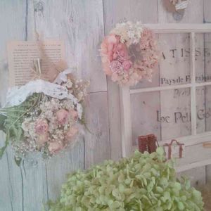 ご近所のママ友達と集まって うちでアナベルのドライフラワーを使って リースを作りました\♪♪/ ハートの形にしてみました♥️(´∀`*)ウフフ