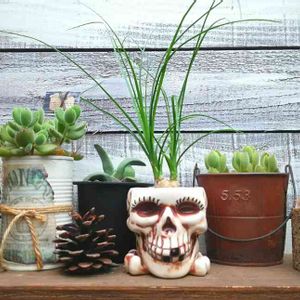 最近バタバタでごぶさたしてました😳 みなさんの投稿も全然見れてなくて🙏 ガイコツ君💀はお隣さんからのBDプレゼント♡ 去年はちょんまげ君だったけど、今年はガイコツ君笑 まつげとお歯黒書かれてますけどーw 植えてあるのなんだろう?トックリランかな?😂