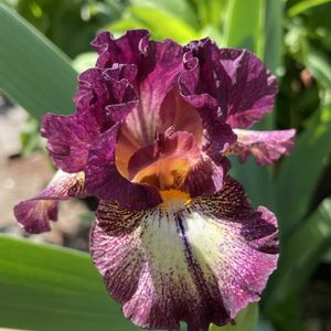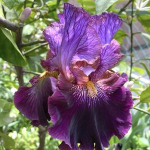 ジャーマンアイリス ブラタント 3年振り!?かな咲いたの😁 下花弁にラインみたいなのが 入ってる。 前は無かったような… 今日は☔️降ったあとで 日差しが乏しいせいで 色味が悪い。