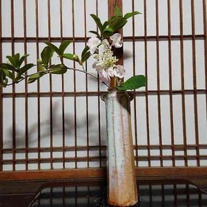 「のびる」って、むかごから花が咲くのですね😊かわいい💠 はこねうつぎの鮮やかなピンクに惹かれ、繊細な乙女のイメージで生けてみました😊