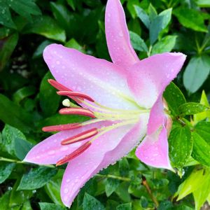 雨の中ピンクの百合が開いてました🌸