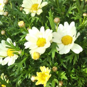 マーガレット ローリー 二度目の花が もりもり咲いてきました。 白〜淡いピンク〜ピンクと、 色の 変化が 楽しめます。 先日 お迎えした カンパニュラも やっぱり、可愛い〜💖