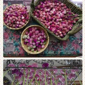 千日紅のドライフラワーもたまって来ました🌼風通しが悪いとすぐカビてしまいます😅 茎付きはワイヤーバスケットに吊るして😆