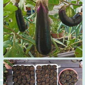 プランターのナスはまだまだ頑張っています🍆 玉ねぎを苗床からポットに移植。もう少し大きくなったら畑に持って行きます🌱