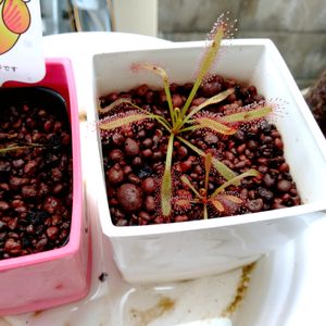 【ドロセラ・カペンシス】 以前にハイドロボールで植え替えたカペンシスさんは粘液ブリブリで元気そうです。 隣は新入りのカペンシスさん。元気になってほしい。