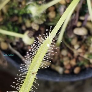 アフリカナガバノモウセンゴケ アルバ(Drosera capensis) アルバはせん毛も赤くなければ🌼もピンクではなく白い花がさきます。地方変異タイプ。 子株なので☝️も部屋行きに~🎵