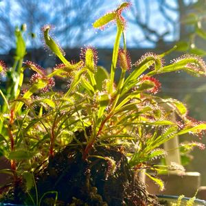 【モウセンゴケ】 値引き品のモウセンゴケ達。ビナータさんは無事に復活しました。アデラエさんはダメでした。カペンシスさんは食虫植物の土に植え替えています。