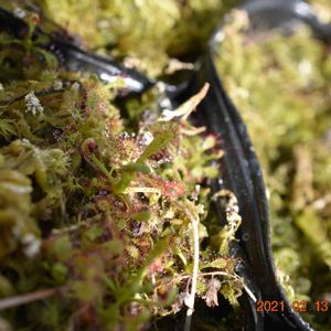2021.02.13 アフリカナガバモウセンゴケの方も順調に成長している。 粘毛の先から粘液をたくさん出している。
