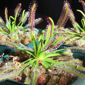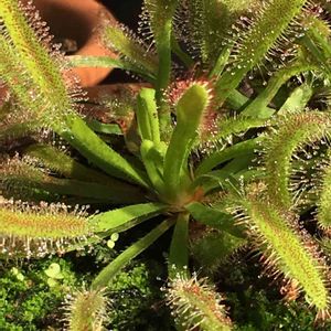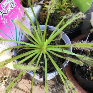 ドロセラ カペンシスです。 ワーディアンにコバエが大量発生し、殺虫剤はまけないし、どうしようかなと思って、ヤフオクで落札しました。お迎えして「どれだけコバエとってくれるかな」ワクワクしていたら、いつの間にかウツボカズラ君たちが食べてくれてました。考えたら食虫植物だらけのワーディアンだもんね|( ̄3 ̄)|