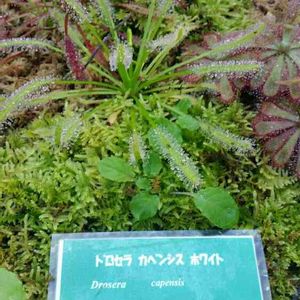 フラワーセンターにて 食虫植物室 ドロセラ カペンシス ホワイト キラキラきれいです