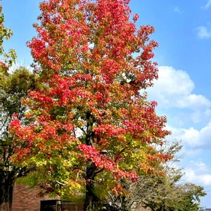 とっても暖かで静かな日曜日でした。 街路樹も公園の木々も植物園の木々も赤や黄色の色とりどり🟡🔴🟢で賑やかな景色です。 お出かけ途中の街路樹 赤く色付き始めたフウ(サンカクバフウ)かと思います。 と、 黄色に色付いたユリノキです。 街路樹が美しく紅葉🍁して、景色も心も明るくなってドライブがウキウキしちゃいます🎶 2枚めと3枚め モミジバフウの紅葉 大きな樹木 寄りかかるようにして仰いで見たくなる。 大きいなぁ〜♡♡♡ ちっぽけな悩みが吹っ飛ぶ👋 4枚め お出かけ先で見かけるカリンの実が綺麗な黄色に熟してきました。 5枚め メタセコイヤの紅葉 大きな木からしなやかそうに垂れな下がる枝に、主軸を残して黄色に紅葉したメタセコイヤの葉っぱです。 今年の紅葉はとっても綺麗です。