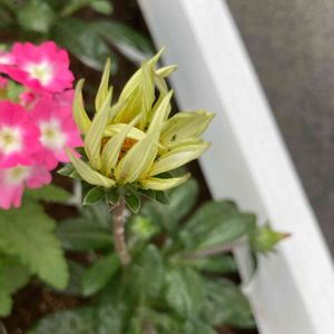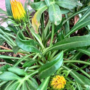 鉢植えガザニアの蕾🍃 株が大きくなって下葉が枯れてきたので 3つに分けました 雨上がりに土まみれで蕾が出ていて 最初恐ろし〜い虫😱がいるかと 歯ブラシで土を落として…… 何もいなかった🤣🎵