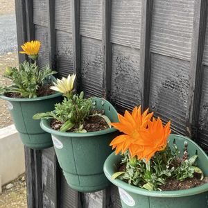 YS散歩🍀 ①「寄せ植え」 💛🤍💗☘️🌸🎶 ②🏠塀の下