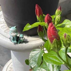 店先で ・ハイビスカス もうすぐ咲きそう カエル🐸さんが見守ってますね〜 ・ペチュニア まぁかわいい💕💕 昨日は、母とランチ🍽️ 歳とっていても良く食べる😃 食後のアイスもホットコーヒー☕️も全て完食😋 だから元気なんですね👍
