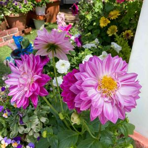 YS散歩🍀 ヘアーサロンの入り口に ダリア🌸