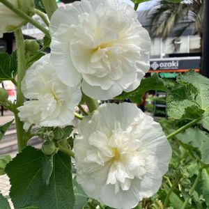 YS散歩🍀 O・Fパークにて🎶 今日のお花・タチアオイ🤍☘️ 自転車置いて入ろうとしたら飛び込んできました❣️