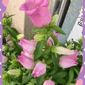 駅前商店街 飲食店🌸 フウリンソウ(風鈴草)💞 別名・ツリガネソウ カンパニュラ・メディウム 花言葉「憐れみ深い,愛らしい」❣️ 【愛野行けば釣鐘草も咲てゐる】北原白秋