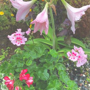 今朝の撮れたてです📷 この組み合わせは珍しいかな❓‥‥💗 アマリリスもまだ元気に花を咲かせてくれています ありがとう💖⭐️🎶