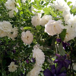 もう15年目くらいのつるバラ*サマースノー🌹 今年もちゃんと咲きました 長いお付き合いなので、色々な想いがあります☺️