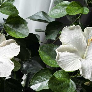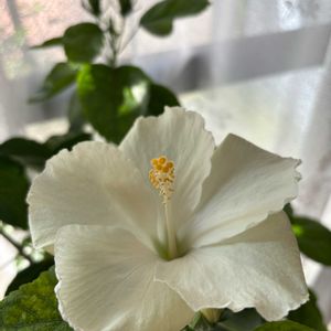 おはようございます☀️ この白いハイビスカスは突然色が入ったり、全体的にピンクになったりしますが、今回は下左の花びらの形が違う。棘みたいなでっぱりがあります。おもしろ〜い(≧◡≦)