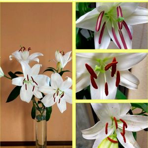 右側 上から順次 雄蕊の変化 左が全体・・パランスがとても難しいですね。 隣家から頂きました。 『カサブランカ』 黄色い花粉は手に付くと取れにくいとは聞いてましたが 本当 着色力がしっかりしてました。