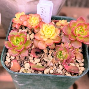 🏷毎月13日と14日は葉挿しの日 マジックジャムゴールドで参加します😊 葉挿しで増やした子達ですが猛暑でダメージ受けました😢 でも紅葉したらちょっと分からなくなったかな😅 中心が黄色で周りが赤の独特の紅葉が可愛いです❤️💛❤️