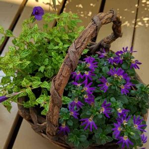 おはようございます☀️ 連日暑いですね 紫の鮮やかさに惹かれて購入 してきました トレニア ブルーインパルスと サンクエール DEEPブルー もう一回り大きな籠に植えて こんもりするのを楽しみにしようと考えています❣️😉👍️🎶