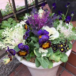 パンジーとハボタンの寄せ植え シック過ぎたかな? でもバッチリ好みなんです😊