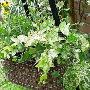 🌿雨が降っていたので 玄関で ゴソゴソ 久しぶりの寄せ植えを٩(๑´꒳ `๑و) 長い梅雨が開けたら 暑い夏に打ち勝つように! 涼しさをイメージして 青と白の小花を こんもり成長したアイビー白雪姫に 💕楽しみ~(*ˊ˘ˋ*)🌿