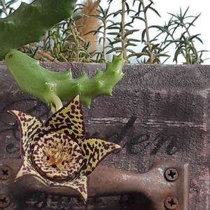 牛角の花が咲いたので 2枚目です💦 牛角と聞けば 焼肉屋を思い出してしまう私😓 そんな私に アピールでしょうか? 堂々の開花✨ クサイ臭いは、この場所の 半分が洗濯物干になってるので 石鹸臭の勝🎵( ´ ▽ ` )