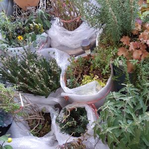 冬越しの仲間達が団結してます٩(๑❛ᴗ❛๑)۶ お揃いの プチプチコートを2枚重ね着して 寄り添いながら 暖をとってるようですね~( ´ ▽ ` )🌼 そのまま強気で冬越しを頑張りましょ‼୧(๑•̀ㅁ•́๑)૭