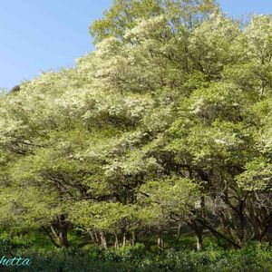 緑と花の白いコントラストが美しくこの時期遠くからでもよくわかります。桜とはまた違った趣がありますね。 昔は中国からの渡来植物とされていましたが戦前に伊勢神宮の森で自生種が発見されましたが、分布は極めて限定的で現在確認されているのは伊勢神宮以外は静岡県湖西市、熊本県荒尾市の3箇所しかありません。湖西市の自生地が北限で最大ですがびっくりする程本数は少ないです。 トキワマンサク🆘 マンサク科 トキワマンサク属 絶滅危惧 ⅠB 類(EN)