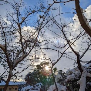 今日3時半頃、朝から降り続いた雪がやんで青空がのぞいてました❄️🌨️ 我が家のサルスベリ、桜、黄モクレンに積もった雪も解けてきました🤗