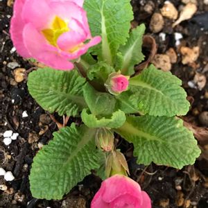 プリムラジュリアン💓 この子は、少なくとも6年以上 お庭の片隅で頑張って咲いています💕 だんだん小さくなってきたので 先週、鉢上げして肥料をあげてみました。 株がしっかりしてきたら またお庭に戻そうかな… 外は一面の銀世界 冬に逆戻りですね💦