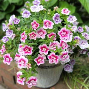 すぐ楽ミリオンベルプチホイップ ベリーベリーヨーグルト 先月の終わりにレスキュー苗でお迎えしポツポツとお花が咲き始めました🌸 2色植えなのでこれからの成長が楽しみです🎶