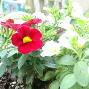 サフィニア JAPANレッド 切り戻しからの、開花です😊 🌿の調子がいまいちだったので、大胆に切り戻しして、やっとここまで成長してくれました😂 but😲 水やりの時、うっかり茎を折ってしまい、 あちゃ〰️〰️〰️💦💦😧 この🌸だけ、どうも、相性が悪いな~😖