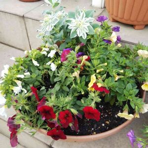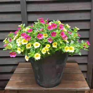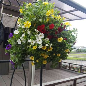 母の日に 息子からもらった鉢に すぐ楽ミリオンベルを植えています🌸 摘芯もしていません💦 切り戻しもしていません💦 軒下に置いてはいますが どしゃ降りの雨で クシャンとなっていましたがこんな感じで復活してくれる 育てやすく優秀な子です🌸