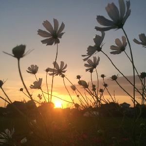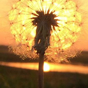 たんぽぽの綿毛と夕陽