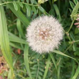 おはようございます☀️ 草の緑の中に白いタンポポの綿毛が 目にとまりました 朝は露が付いて綺麗ですね😊